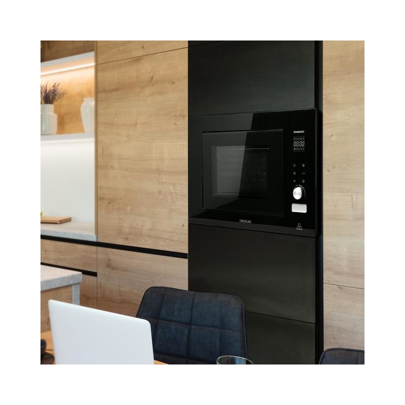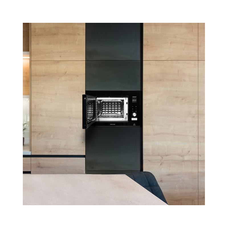 Cecotec 01383. Tipo de instalación: Integrado, Tipo de producto: Microondas con grill, Capacidad interior: 21 L, Potencia del microondas: 1200 W, Pantalla incorporada, Tipo de visualizador: LED, Tipo de control: Giratorio, Tocar, Color del producto: Negro