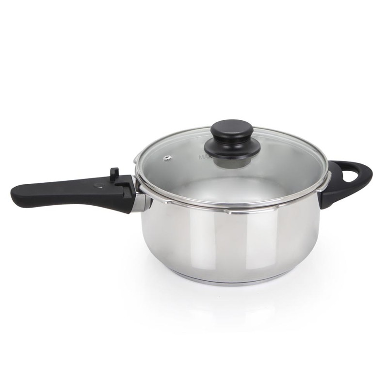 La olla cuenta con un sistema de selección gradual de presión de 60 kPa hasta 110 kPa en base a los alimentos en cocción. En su interior, con acabado mate, se encuentra un medidor de nivel de llenado para que siempre tengas la medida adecuada.