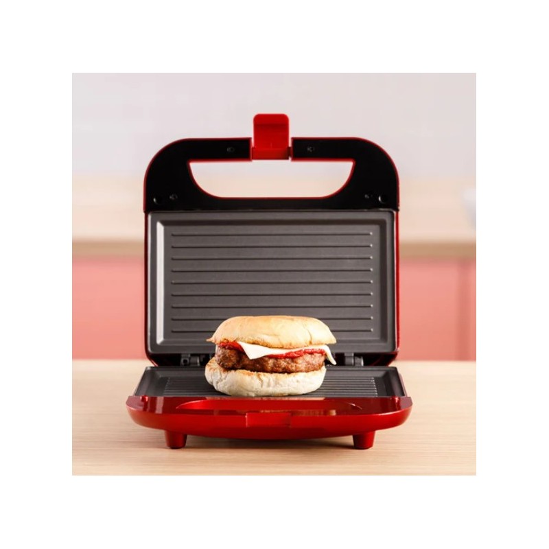 Compacta y muy fácil de usar.Con su diseño compacto, podrás guardar esta sandwichera en cualquier parte de la cocina. Se puede almacenar tanto vertical como horizontalmente. Es muy sencilla de usar, ella misma te indicará cuándo está caliente y con tan solo pasarle un paño húmedo ya estará limpia.