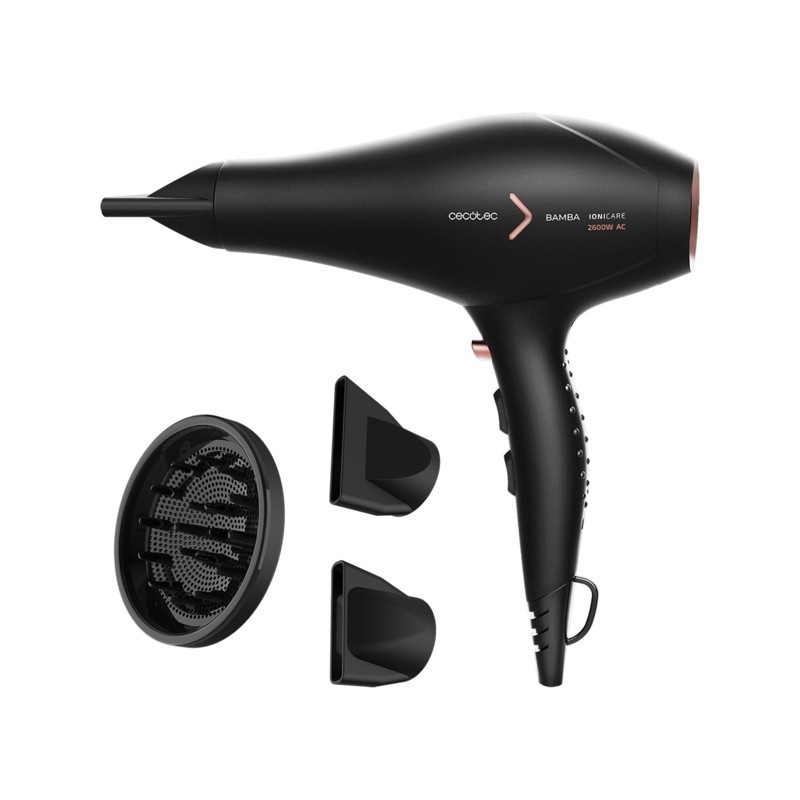 Cecotec IoniCare 5350 PowerShine Fire. Tipo de motor: Corriente alterna. Color del producto: Negro, Rosa, Tipo de colgador: Anilla para colgar, Longitud del cable: 2 m. Potencia: 2600 W, Voltaje de entrada AC: 220 - 240 V, Frecuencia de entrada AC: 50 - 60 Hz. Ancho: 100 mm, Profundidad: 220 mm, Altura: 285 mm. Cantidad por paquete: 1 pieza(s), Ancho del paquete: 235 mm, Profundidad del paquete: 115 mm