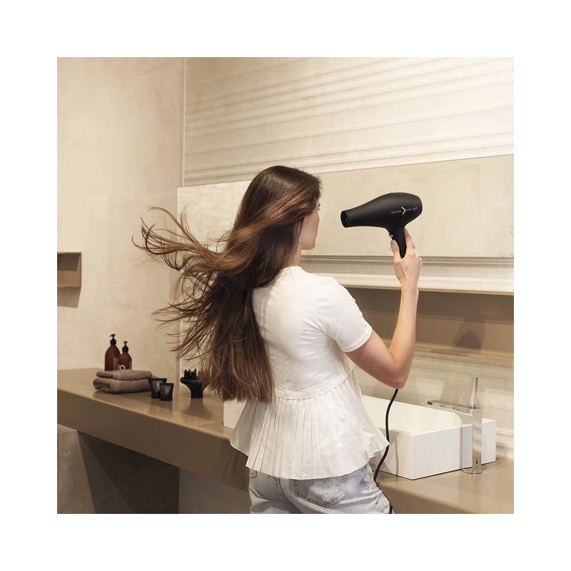 Peinado perfecto durante más tiempoEl caudal de aire frío real que consigue nuestro secador ayuda a evitar daños en el cabello sellando más rápidamente la cutícula, además prolonga el peinado para que dure perfecto durante más tiempo.