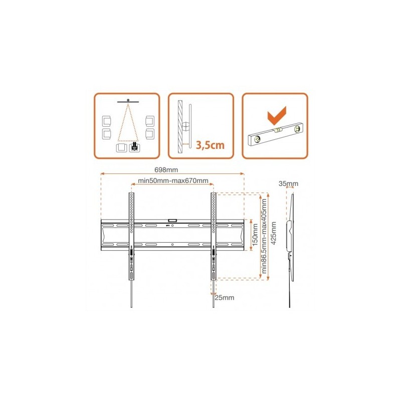 Metronic 451043, 139,7 cm (55"), 177,8 cm (70"), 600 x 400 mm, 600 x 400 mm, Metal, Negro