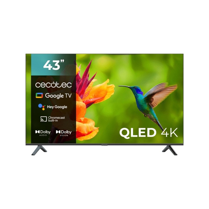 Cecotec 00979. Diagonal de la pantalla: 109,2 cm (43"), Resolución de la pantalla: 3840 x 2160 Pixeles, Tipo HD: 4K Ultra HD, Tecnología de visualización: QLED, Forma de la pantalla: Plana. Smart TV. Relación de aspecto nativa: 16:9. Wifi. Color del producto: Negro