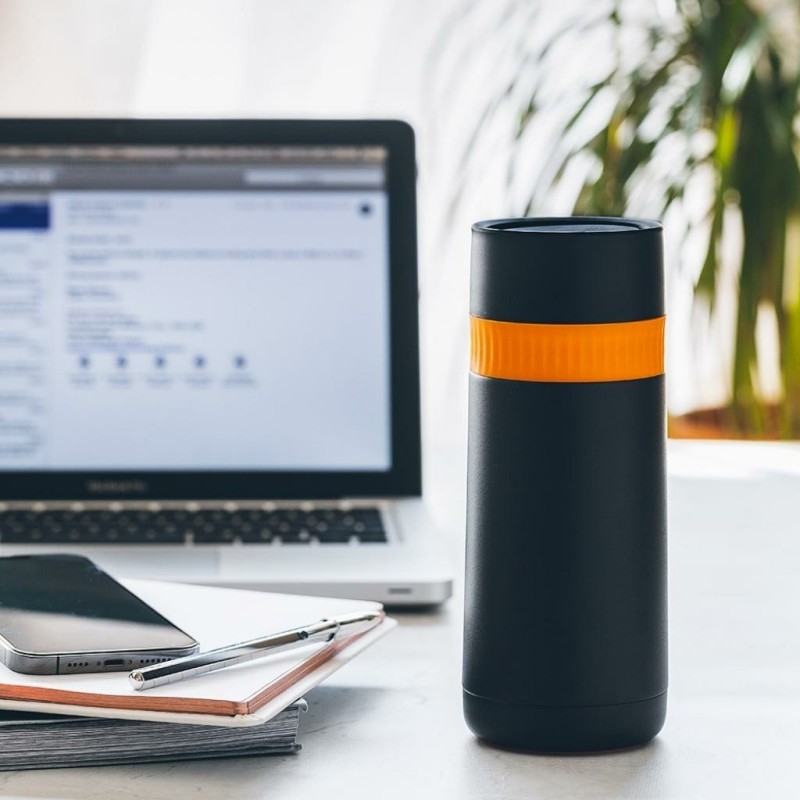 El termo travel mug es una taza térmica ideal para como vaso para el coche o para llevar el café o el té caliente de camino al trabajo. Es una taza térmica ideal para llevar y mantener las bebidas frías o calientes allí donde vayas. Una opción estupenda para tener siempre a punto el chocolate caliente de la mañana, o el caldo para los días de frío. También es perfecto para llevar un refresco en tus paseos por el parque o por la playa. Es muy fácil y cómodo de usar, y su sistema de apertura y cierre, con solo presionar la tapa, hacen que se pueda manejar incluso con una sola mano. Al estar fabricado en acero inoxidable, es muy higiénico y no absorberá olores ni sabores, por lo que es muy práctico y una opción perfecta para beber directamente sin riesgos de derrames, gracias a su tapón de seguridad.