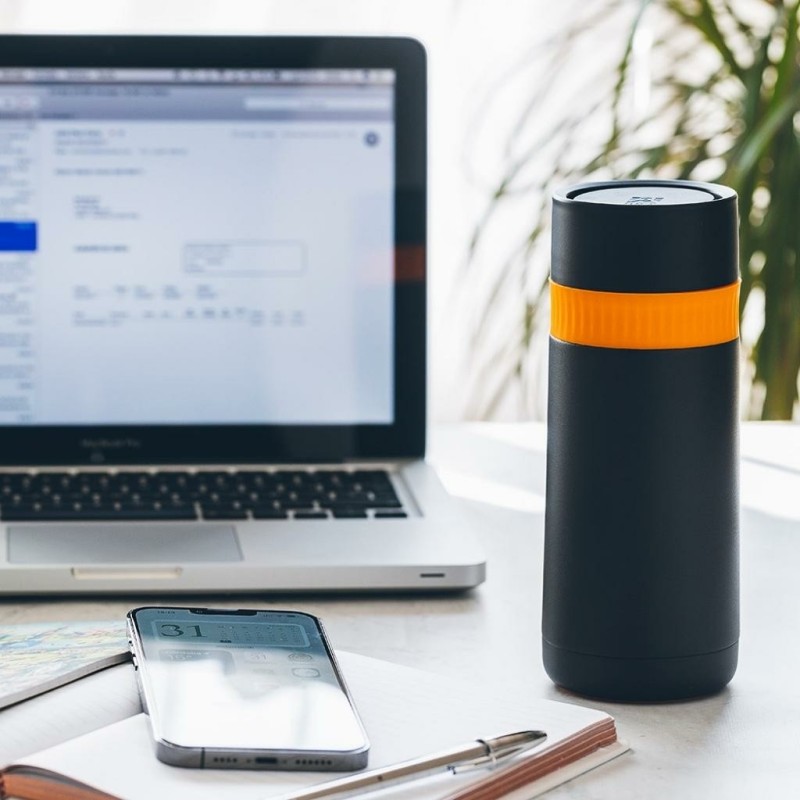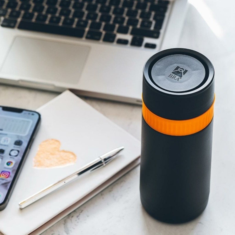 El Termo travel mug Enjoy Efficient de Bra es una taza térmica de alta calidad y diseño vanguardista, ideal como vaso para llevar las bebidas de forma sostenible, al tiempo que las mantiene frías o calientes durante varias horas gracias a su doble pared de acero inoxidable.