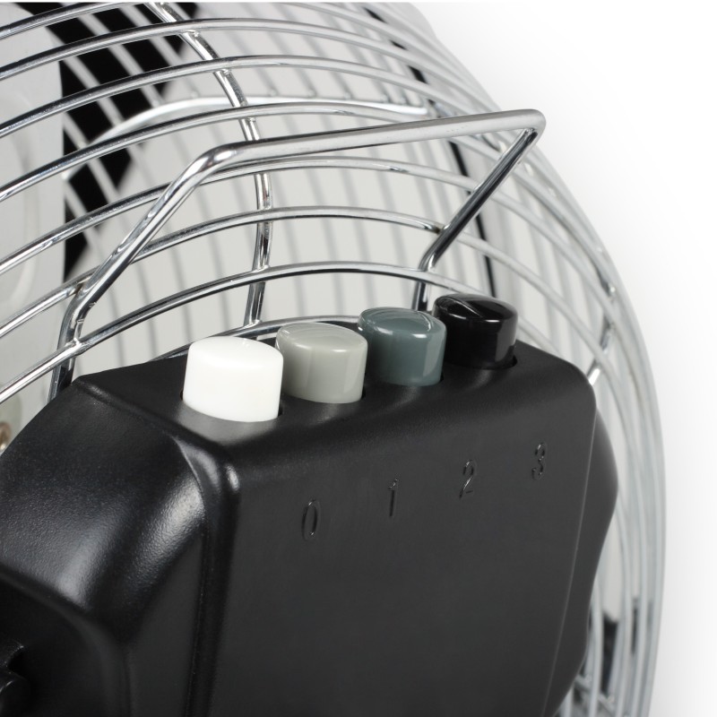 El ventilador de suelo es realmente muy potente. El marco metálico robusto con patas antideslizantes permite al ventilador sostenerse sobre cualquier superficie. Gracias a su diámetro de 35 centímetros, puede usarlo hasta como ventilador de mesa o de escritorio.