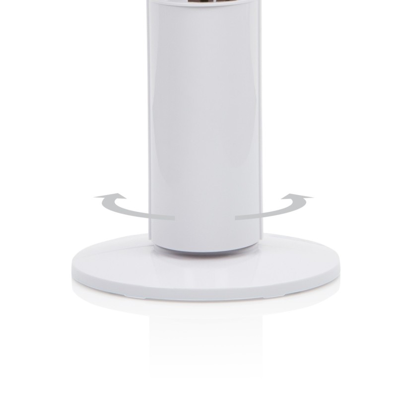 El ventilador de torre cuenta con rendijas de aire en tres de sus lados por lo que no solo sopla aire desde la parte frontal sino desde todos lados. Tiene un rango de oscilación de 75 grados por lo que el ventilador puede enfriar una habitación entera. Puede seleccionar fácilmente uno de los tres ajustes de flujo de aire con el selector giratorio. De esta forma puede ajustar el flujo de aire correcto que sea más cómodo para usted y su entorno.